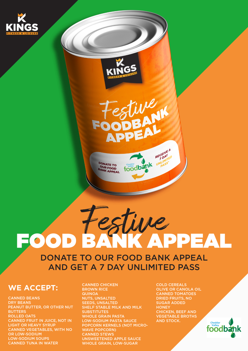 Kings Fitness & Leisure is proud to support the Festive Food Bank Appeal. As a thank you for your generous donation, we’ll gift you a 7-day unlimited trial!