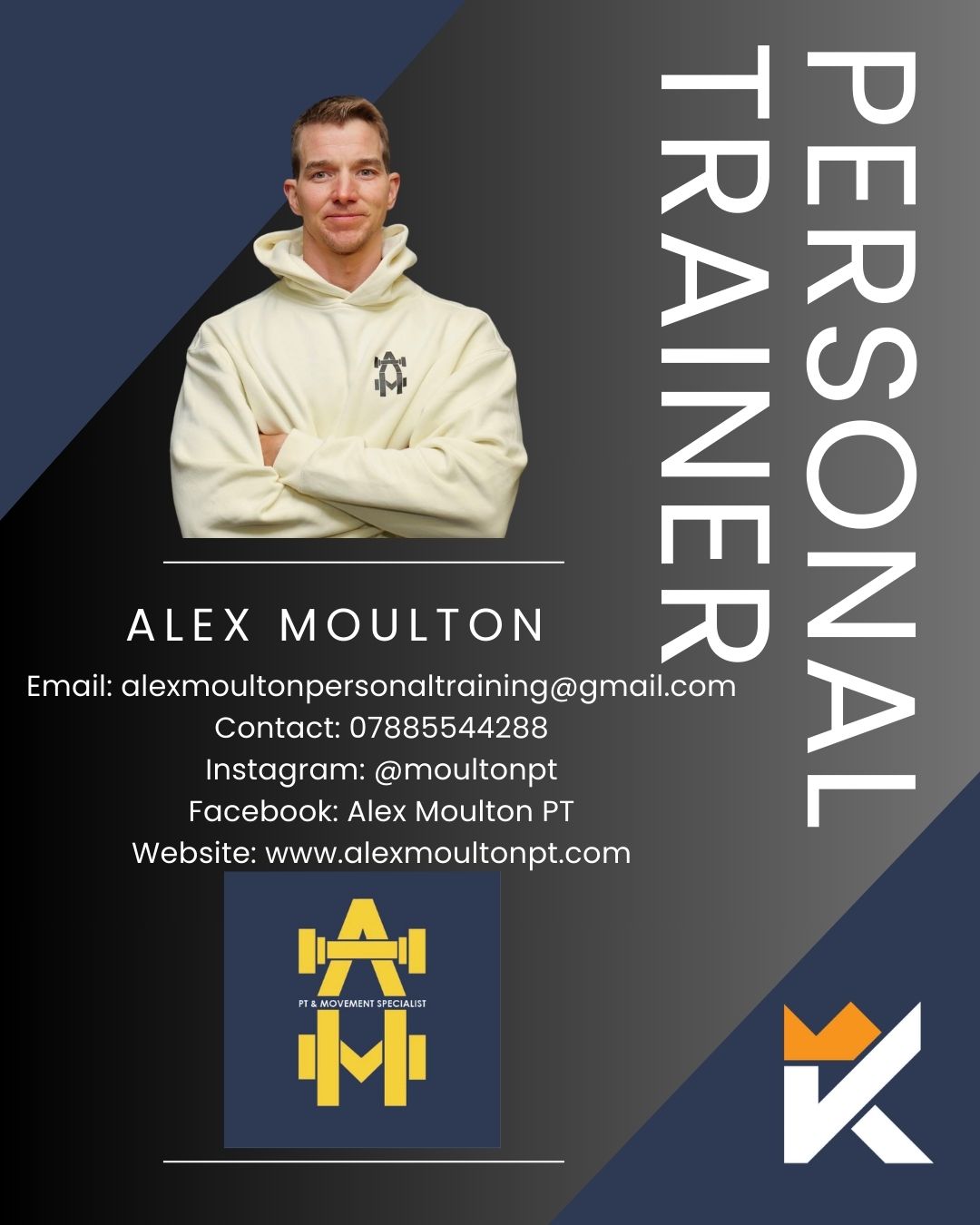 Website: www.alexmoultonpt.com Number: 07885544288 Instagram: @moultonpt Facebook: www.facebook.com/AlexMoultonPT