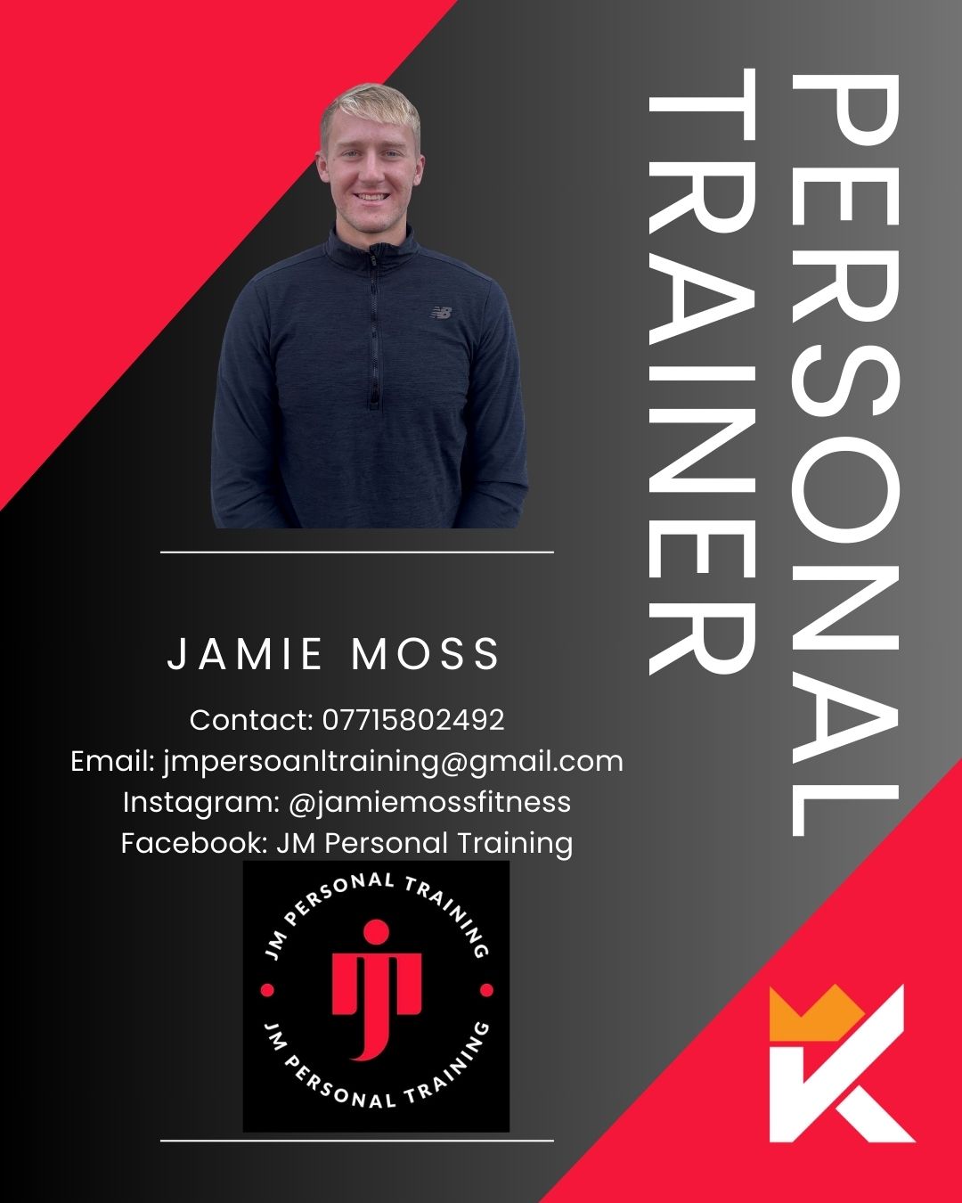 Whatsapp: 07715 802492 Email: jamiemosspersonaltraining@gmail.com *Instagram: @Jamiemossfitness *Facebook: JM Personal Training